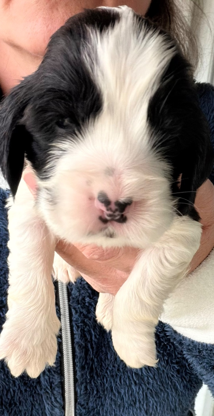AMORE male Cocker Anglais LOF Disponible à la réservation Magnifique chiot Cocker Anglais, né le 29 décembre, issu d un mariage soigneusement sélectionné pour le caractère, la santé et la morphologie. Élevé en milieu familial, au sein de notre élevage, ce chiot bénéficie d une socialisation précoce : manipulation quotidienne, découverte des bruits de la maison, contact avec adultes, enfants et autres chiens. Inscrit au LOF Identifié par puce électronique Primo-vacciné Vermifugé régulièrement Certificat vétérinaire de bonne santé fourni Parents visibles et testés selon la race Le Cocker Anglais est un chien équilibré, affectueux et intelligent, parfaitement adapté à la vie de famille comme à des activités plus sportives. Élevage déclaré suivi sérieux après le départ Photos et renseignements complémentaires sur demande Départ possible à partir de 27 février 2026 Uniquement pour familles sérieuses et réfléchies.
